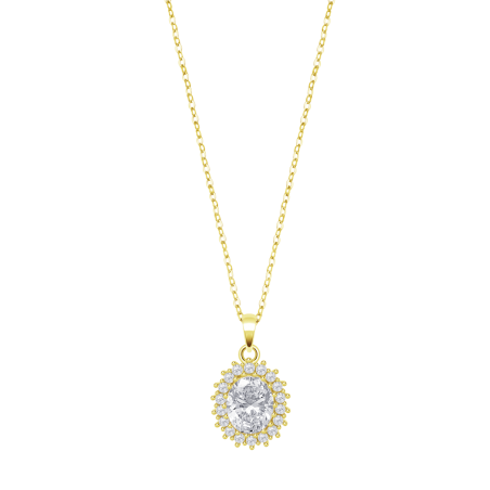 Collana in argento 925 con trattamento IP oro giallo + pendente con zircone ovale