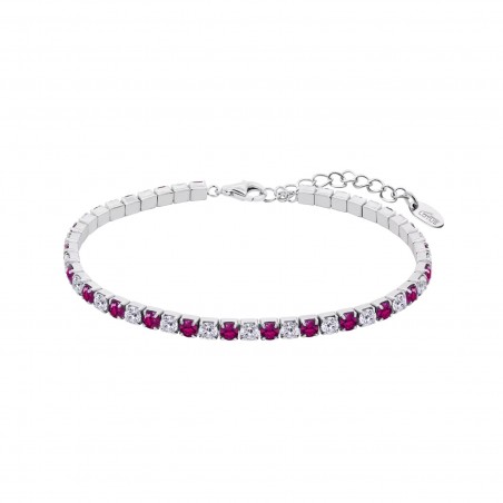 Bracciale tipo tennis in argento 925 con zirconi rossi e trasparenti