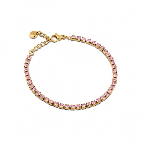 Bracciale in acciaio IP oro giallo tipo tennis con cristalli rosa