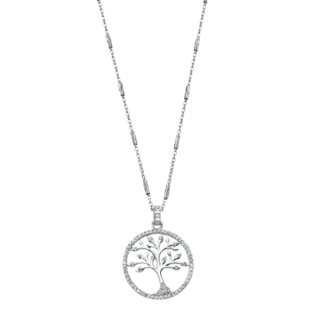 Collana in argento 925 con pendente albero della vita e zirconi bianchi