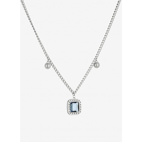 Collana in acciaio con pendente quadrato con pietra celeste + 2 pendenti piccoli