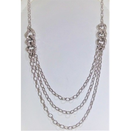 Collana in bronzo colore argento a catena con 3 catenelle centrali di diversa lunghezza a degradè