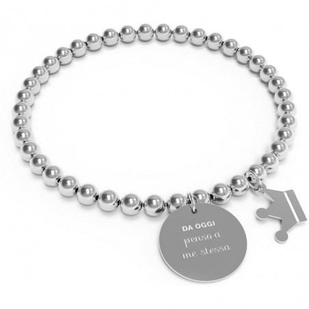 Bracciale elastico in acciaio + pendente con scritta (da oggi penso a me stessa)