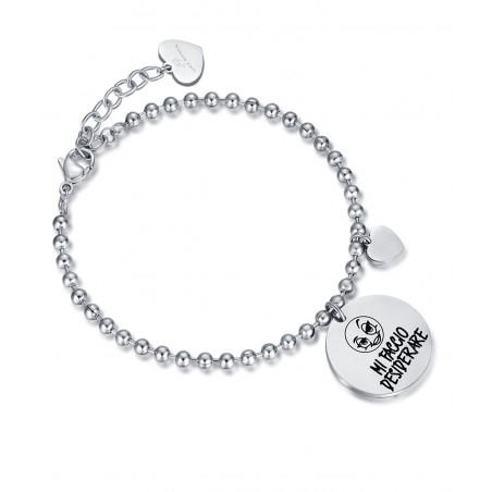 Bracciale in acciaio + piastra con scritta (mi faccio desiderare) e pendente cuore