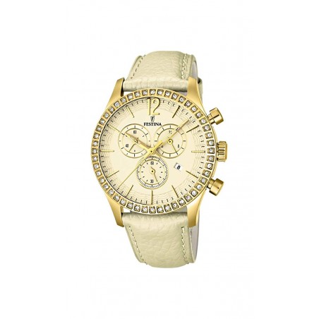 Cassa: acciaio laminato oro giallo con strass bianchi sulla ghiera, diametro 41 mm, spessore 12 mm