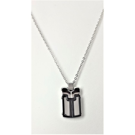 Collana in acciaio con pendente a forma di piastra in acciaio di colore argento e contorni neri