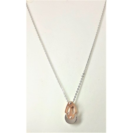 Collana in acciaio con pendente a forma di carrucola in acciaio e acciaio rosè