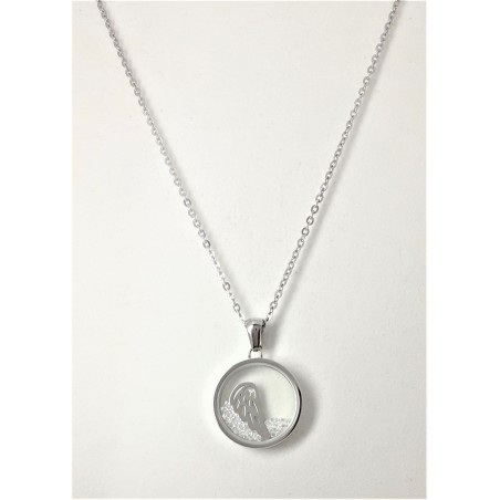 Collana in acciaio + pendente con all'interno ala e zirconi trasparenti