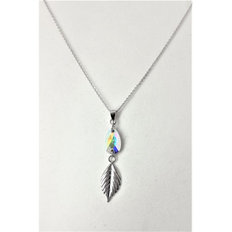 Collana in argento 925 + pendente con cristallo Swarovski di colore bianco boreale e foglia in argento