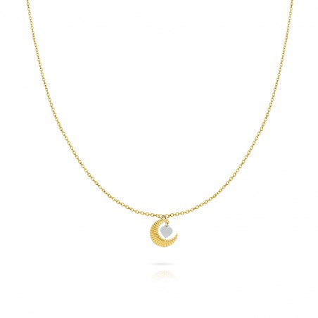 Collana in acciaio dorato con pendente a forma di luna con al centro cuore