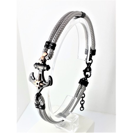 Bracciale in tessuto grigio e acciaio ip nero con ancora