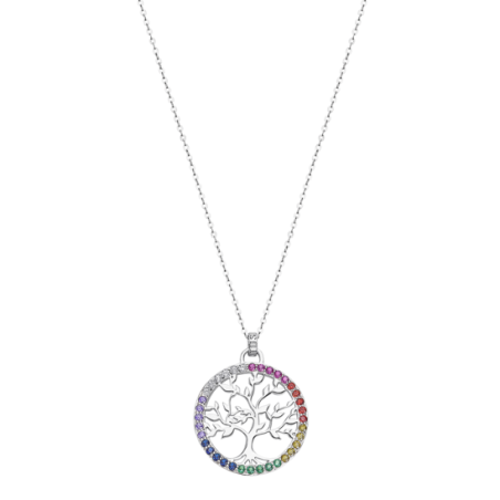 Collana in argento 925 con pendente albero della vita con zirconi multi colore