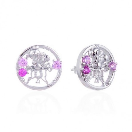 Orecchini in argento 925 a bottone con cavallo, orsetto e pietre multi colore