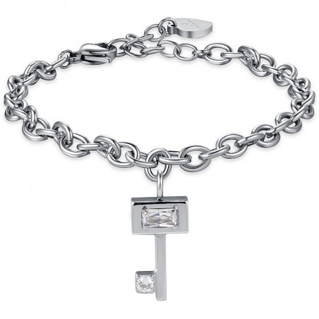 Bracciale in acciaio con pendente a forma di chiave con cristalli trasparenti