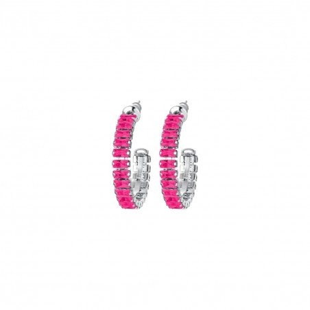Orecchini a cerchio in acciaio con cristalli baguette di colore fucsia