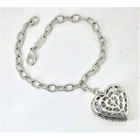 Bracciale in bronzo a catena con cuore pendente con strass di colore glicine