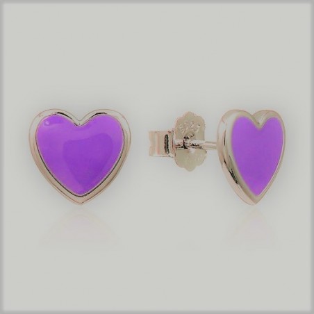 Orecchini a lobo a forma di cuore in argento 925 con smalto glicine