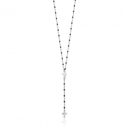 Collana in acciaio con croce + pezzo pendente con croce finale e inserti in smalto nero
