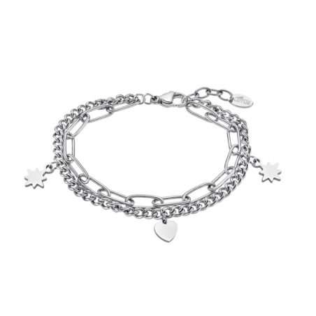 Bracciale da donna in acciaio a doppio filo con pendente cuore e 2 pendenti rosa dei venti