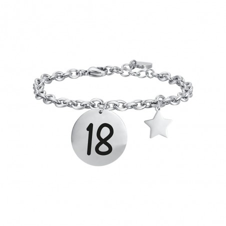 Bracciale da donna in acciaio con pendente stella e pendente centrale con numero 18 e scritta "il meglio deve ancora venire"