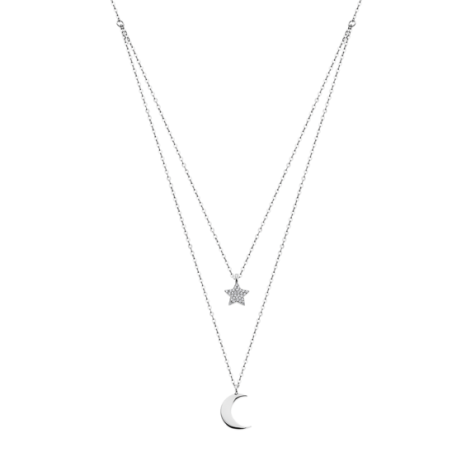 Collana da donna in argento 925 a doppio filo con luna e stella