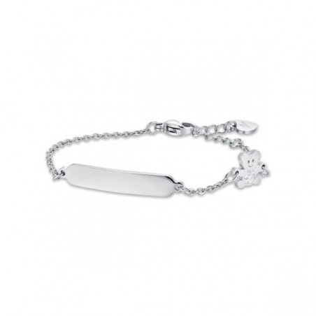 Bracciale da bambina in acciaio con piastra centrale e orsetto con strass