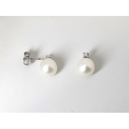 Orecchini in oro bianco 18 Carati con perle coltivate di acqua dolce e diamantini