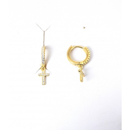 Orecchini in argento 925 IP oro giallo a cerchio con croce pendente e zirconi trasparenti