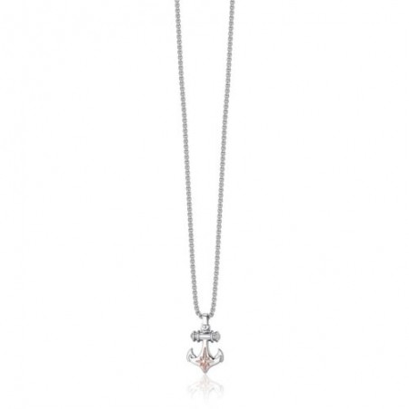 Collana da uomo in acciaio con pendente rosa dei venti con ancora IP rosé