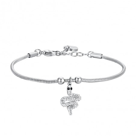 Bracciale in acciaio con pendente a forma di serpente con strass