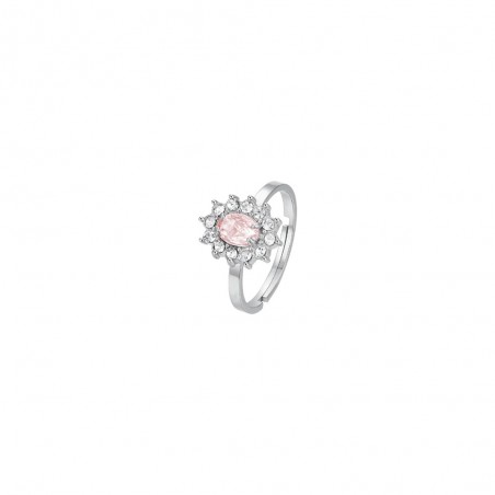 Anello in acciaio con zircone ovale di colore rosa contornato con strass