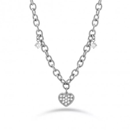 Collana in acciaio a catena con pendente centrale cuore con strass e 4 pendenti laterali punto luce