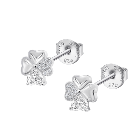 Orecchini In argento 925 a forma di quadrifoglio con zircone a cuore e zirconi