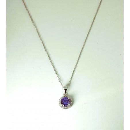 Collana in argento 925 con pendente co cristallo glicine e zirconi