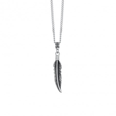 Collana in acciaio con pendente piuma