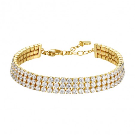 Bracciale in acciaio IP oro giallo tipo tennis con zirconi a tre file